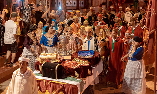 🕰️ 22h30: Début du spectacle autour de l'Aréna: Fantasia Show, Chevaliers Cascadeurs, Le Tapis volant, Danseuse du ventre, Défilé des troupes folkloriques...